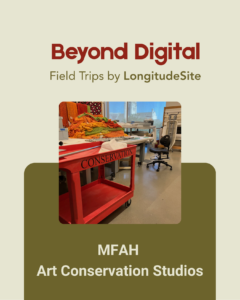 The group included students from Rice University, University of St Thomas, and Houston Community College majoring in various fields, including art history, biology, religion, and business, as well as a professor of finance from St Thomas and Ipek Martinez from LongitudeSite. Mr. Per Knutas, Chairman of Sarah Campbell Blaffer Foundation Center for Conservation, led the group through the studios while sharing an overview of the conservation activities, their purpose, and the types of objects they handle.